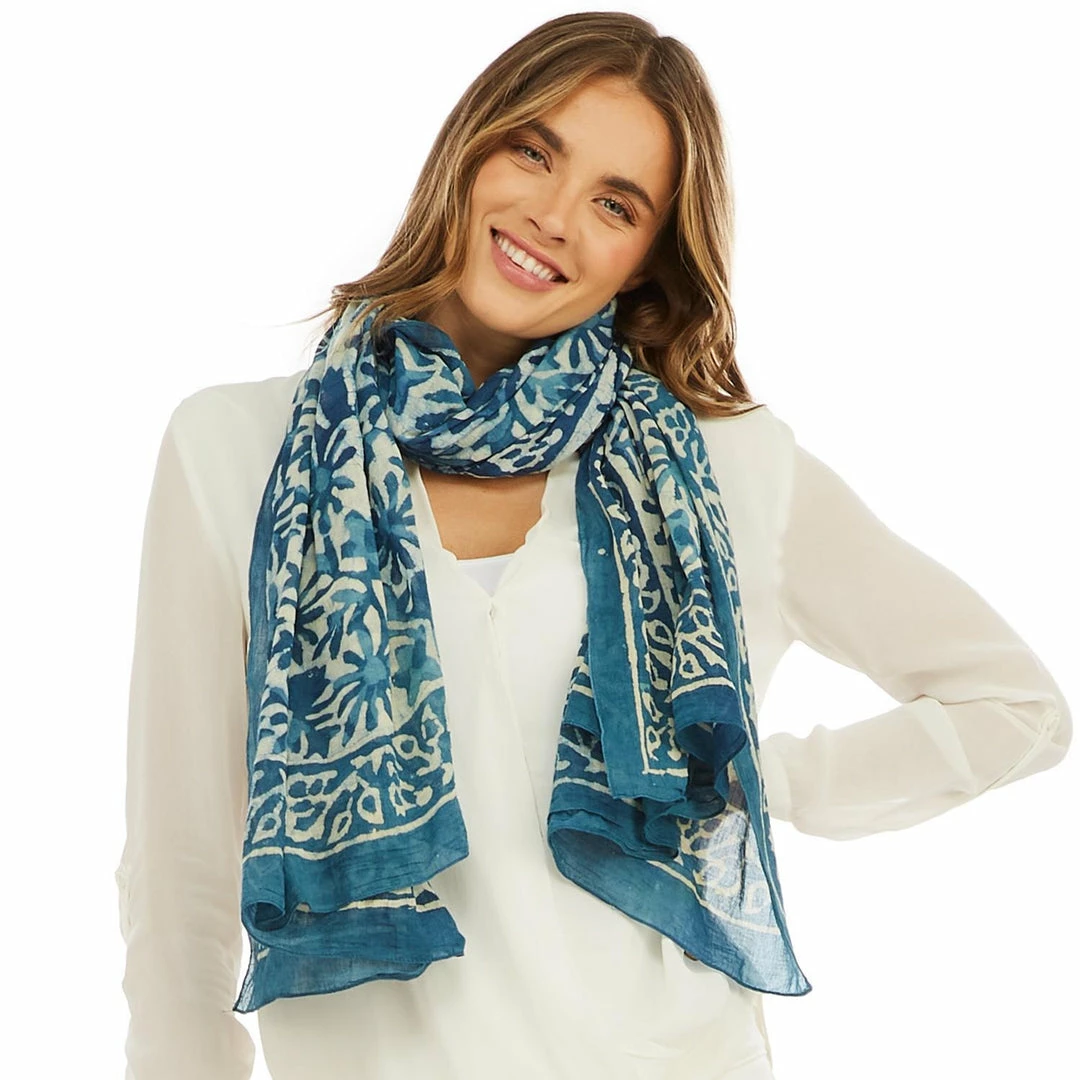 This easy to wear hand block printed scarf can be tied in many ways, to achieve different looks. Wrap it around your neck, over your shoulders as a shawl or tie around your waist as a sarong. We love this style paired with jeans and a tee shirt for a laid back appeal.