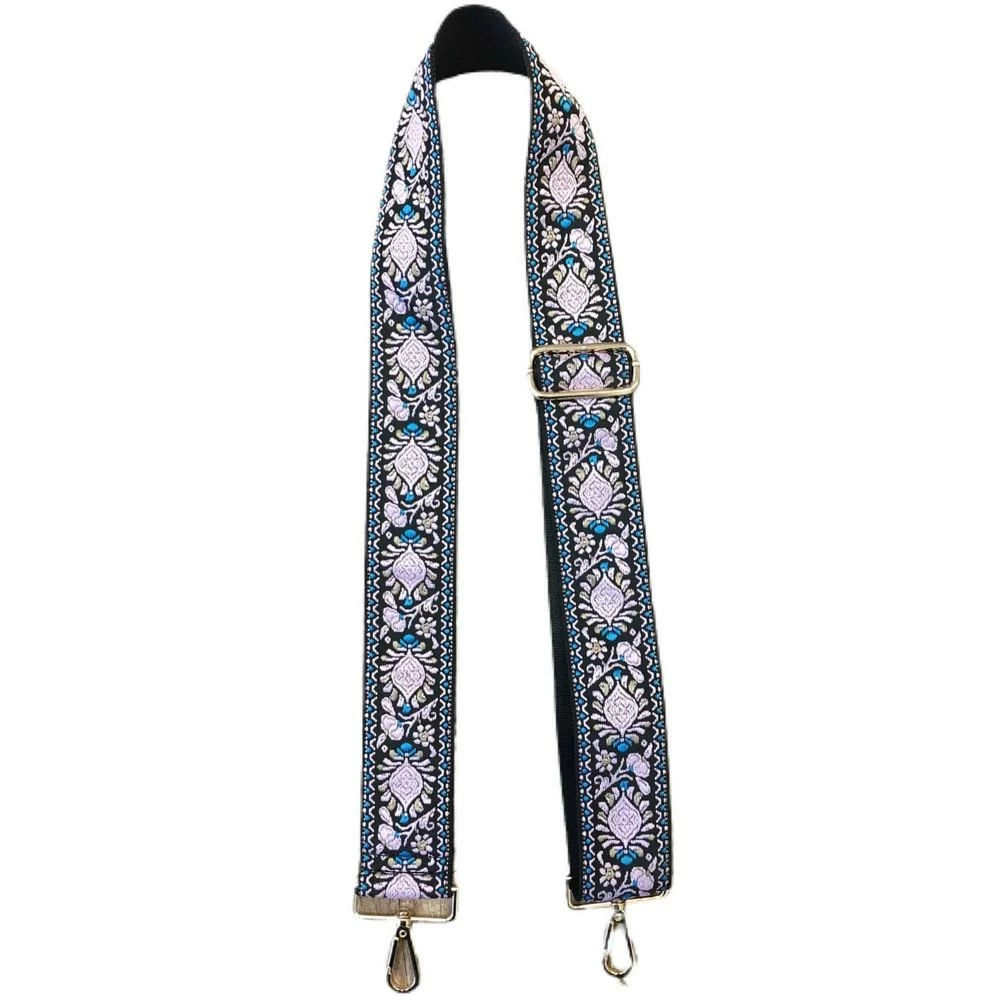 Ahdorned Bags Floral Embroidered Bag Strap Assorted Hardware – Light Pink/Blue