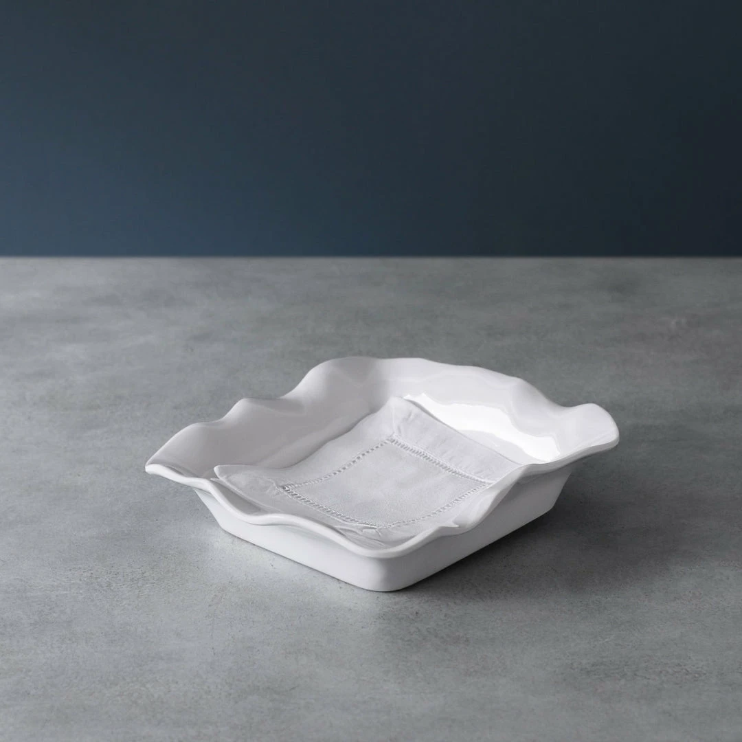 Composed of luxury melamine and designed in inimitable Beatriz Ball style, our distinctive VIDA Havana Beverage Napkin Holder (White) is a perfect choice for presenting paper napkins or linen coasters at the bar, but can also be used for a variety of other purposes. Employ it for serving snacks, as a candy dish, or as a handsome catch-all on the desk. With the substance, weight and appearance of ceramics, the Havana line of luxury melamine is designed for everyday enjoyment, and this versatile white piece is ideally suited for indoor and outdoor entertainment. Mix and match with our new kitchen items, as well as with our fabulous new dining pieces. Blends beautifully with any items from Beatriz Ball’s signature metal line. Makes an unforgettable hostess gift. Dishwasher safe (top rack), heavy-weight, break resistant and durable, food safe, BPA and PABA free. All sales final on seconds; non-refundable. All sales final on seconds; non-refundable.