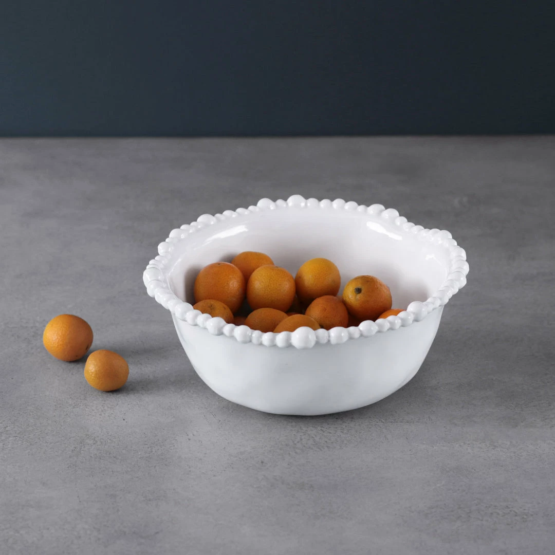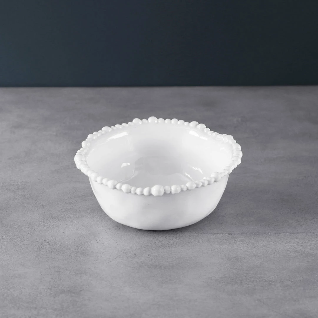 Wake up your dining routine with these fabulous cereal bowls. Introducing the VIDA Alegria Cereal Bowl (White); an essential new item from Beatriz Ball’s Alegria Collection of luxury melamine. With a charming pearl rim and a brilliant surface, the bowl may be paired with other white dining pieces–an 11″ dinner plate and a 9″ salad plate–for a coordinated serving set. A table setting with a carefree and modern Beatriz Ball twist! Perfect soup or snack bowl, too. It looks great when sharing a table with items from Beatriz Ball’s signature metal line. The bowl has the luster, heft and look of a ceramic piece. Made of luxury melamine for everyday enjoyment, this piece is ideally suited for indoor and outdoor entertainment. Dishwasher safe (top rack), heavy-weight, break resistant and durable, food safe, BPA and PABA free. All sales final on seconds; non-refundable.