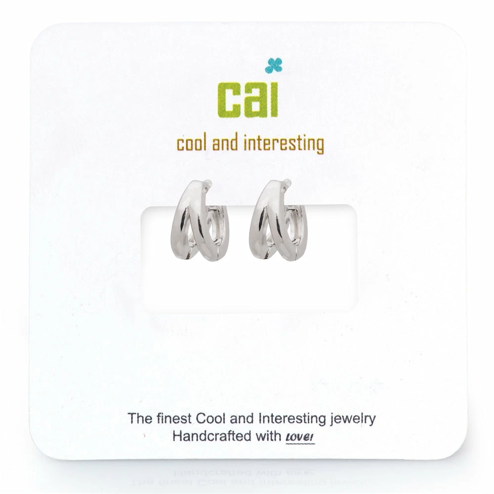 CAI Jewelry Silver Plain Smooth Split Huggie Earrings