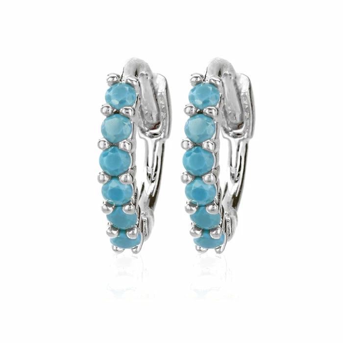 Silver Turquoise Half Round Stone Huggies