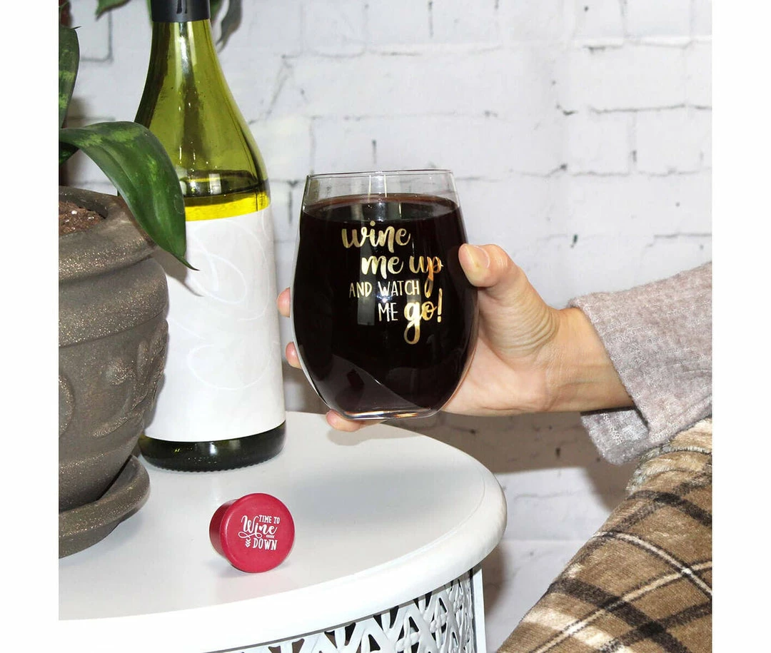 Raise a glass for Moms. The perfect gift for a busy mom and wine lover connoisseur. The wine glass holds 18 ounces of liquid and are 4.75 inches tall.