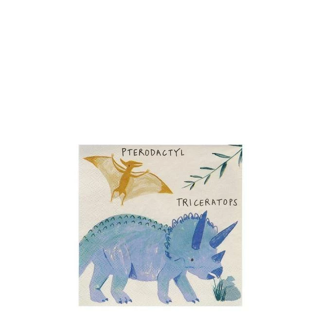 These Dinosaur Kingdom small napkins will look terrific at a dinosaur party. Featuring beautifully illustrated dinosaurs with copper and green foil details.