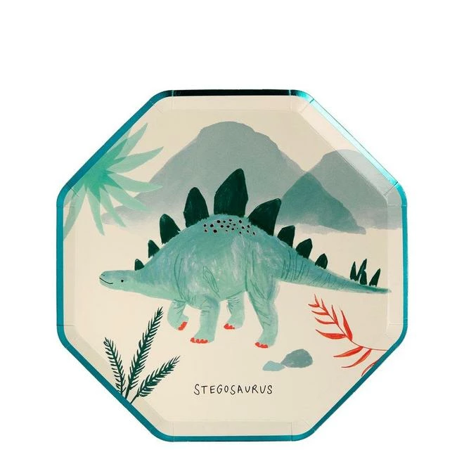 Make your dinosaur party look even more terrific with these brilliant Dinosaur Kingdom plates. Featuring beautiful illustrations of famous dinosaurs, with copper and green foil detail.