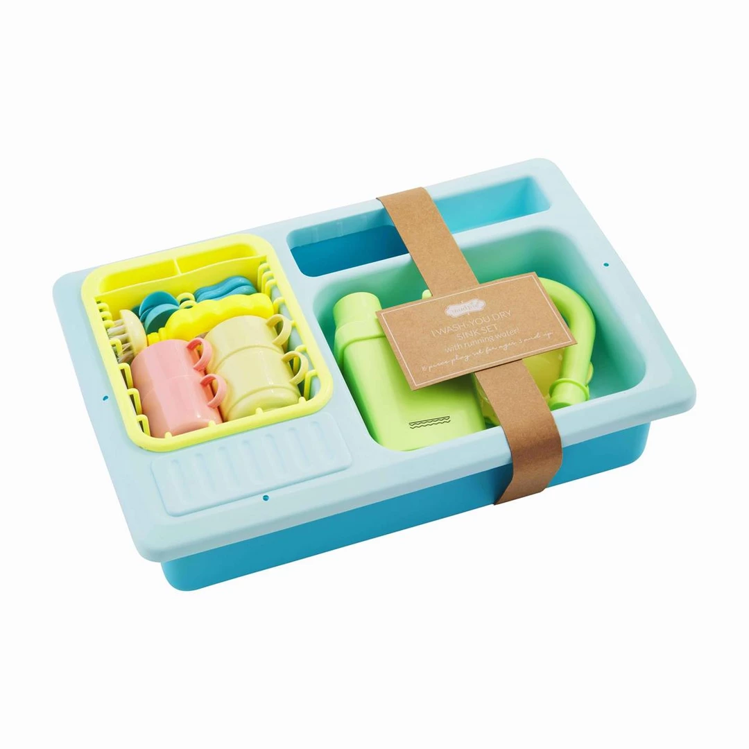 16-piece set. Washing dishes has never been so fun! Circulating water sink system allows for sensory pretend play with cups, dishes, silverware and dish soap. Requires 3 AA batteries, not included. Ages 3+.