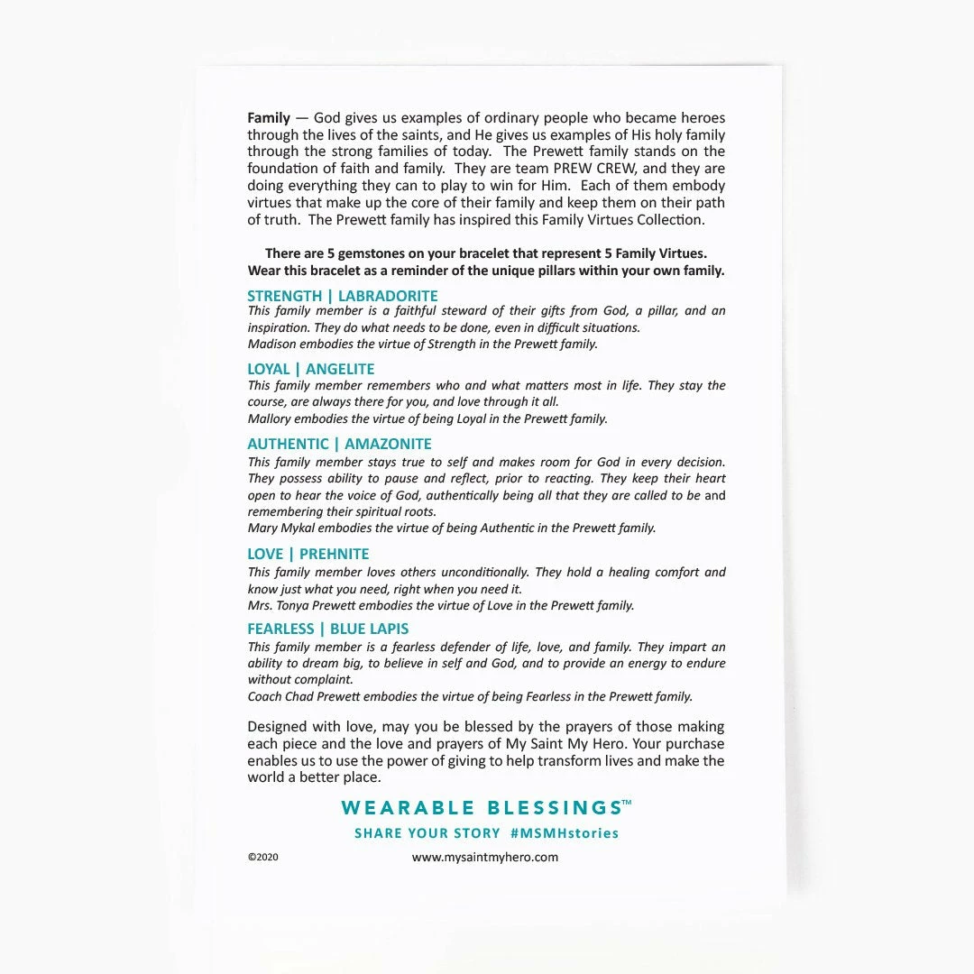 - The Prewett Family Prew Crew Family Virtues Bracelet comes on an Inspirational Card