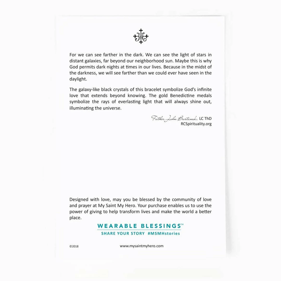 - Stellar Blessings Night Sky Crystal and Benedictine Blessing Bracelet comes on an inspirational card