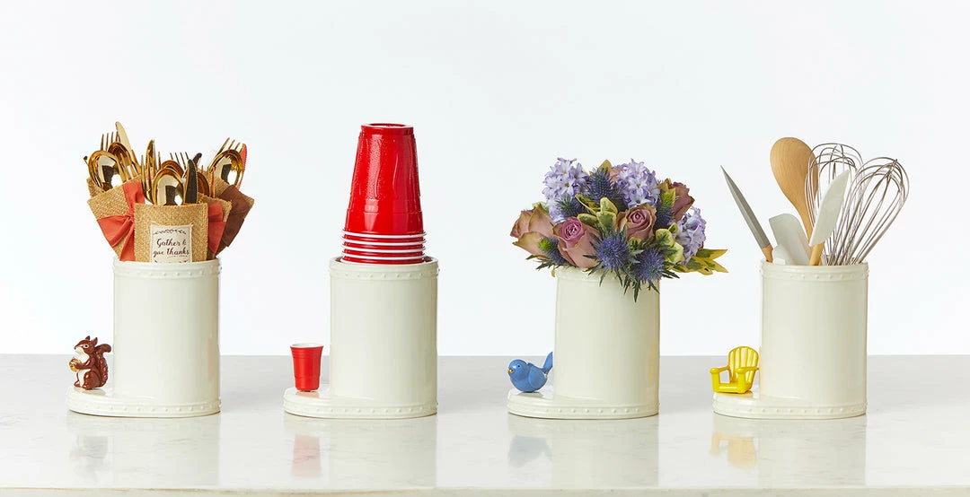 If you’re trying to stay organized in the kitchen, Nora Fleming is here to help! This multipurpose utensil holder is a countertop necessity that can also turn into a vase or a wine cooler!