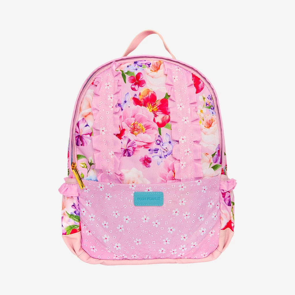 Functional, yet fashionable—our new ruffled backpack is perfect for nursery, kinder, school, or a weekend trip away from home. Roomy interior with hidden pocket and hidden zipper closure for all the essentials. Exterior straps to hold your peanut’s favorite swaddle, Patoo™, or blanket and front pocket for their best friend to tag along. Mix and match with your favorite apparel from Posh Peanut®!