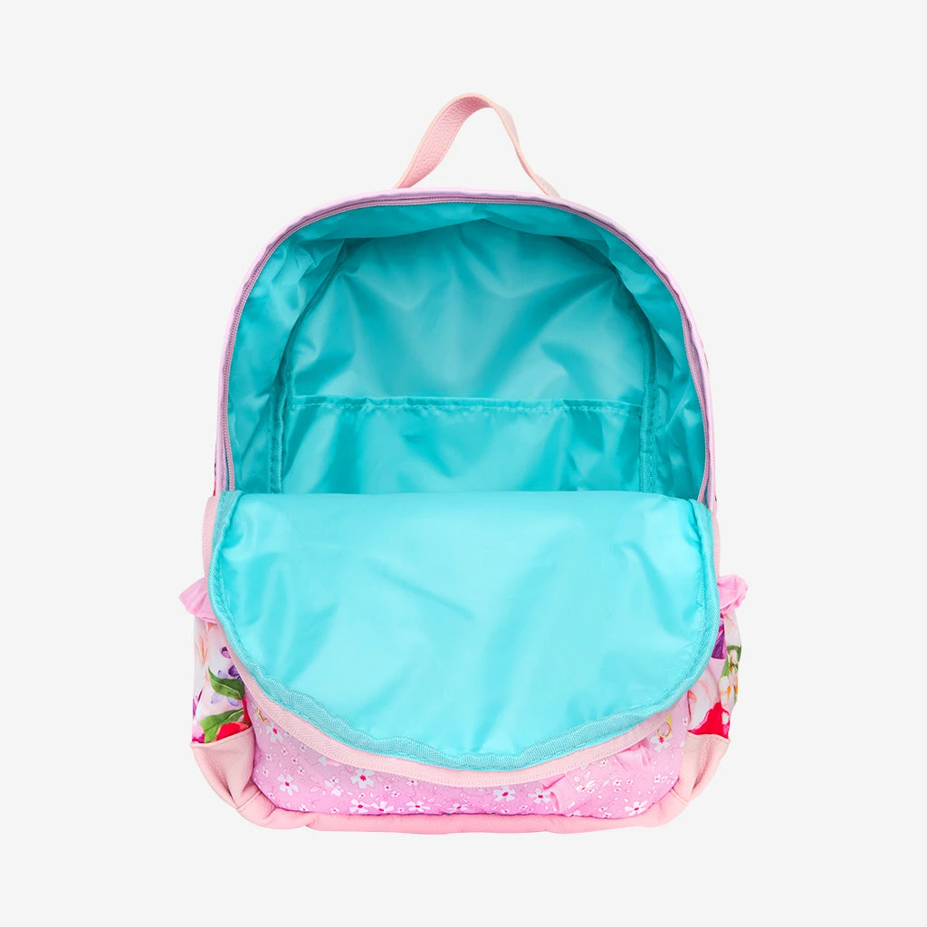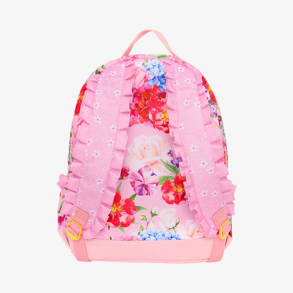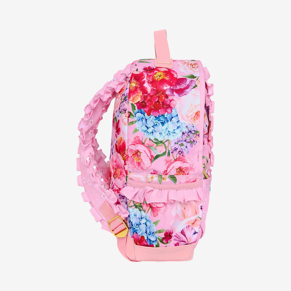 - Ruffle trim on straps and side pockets