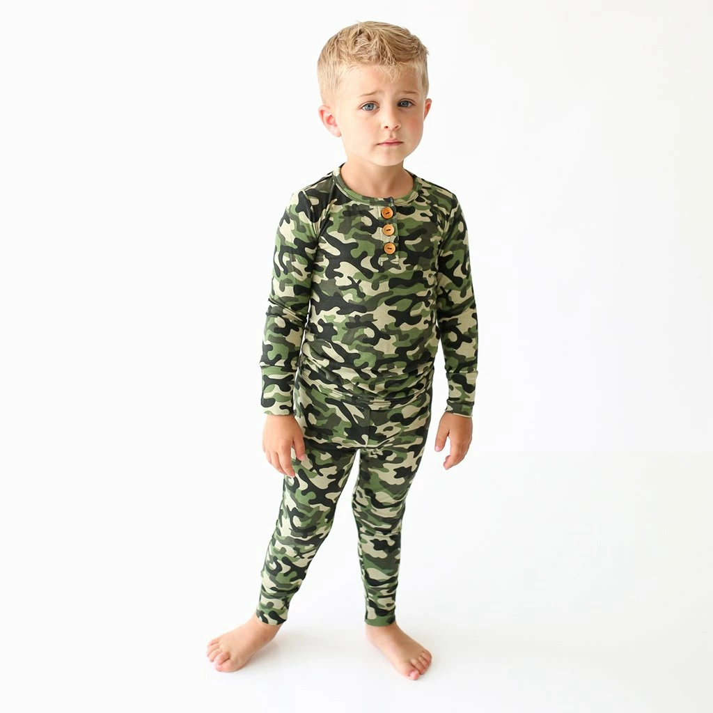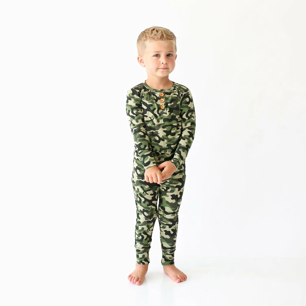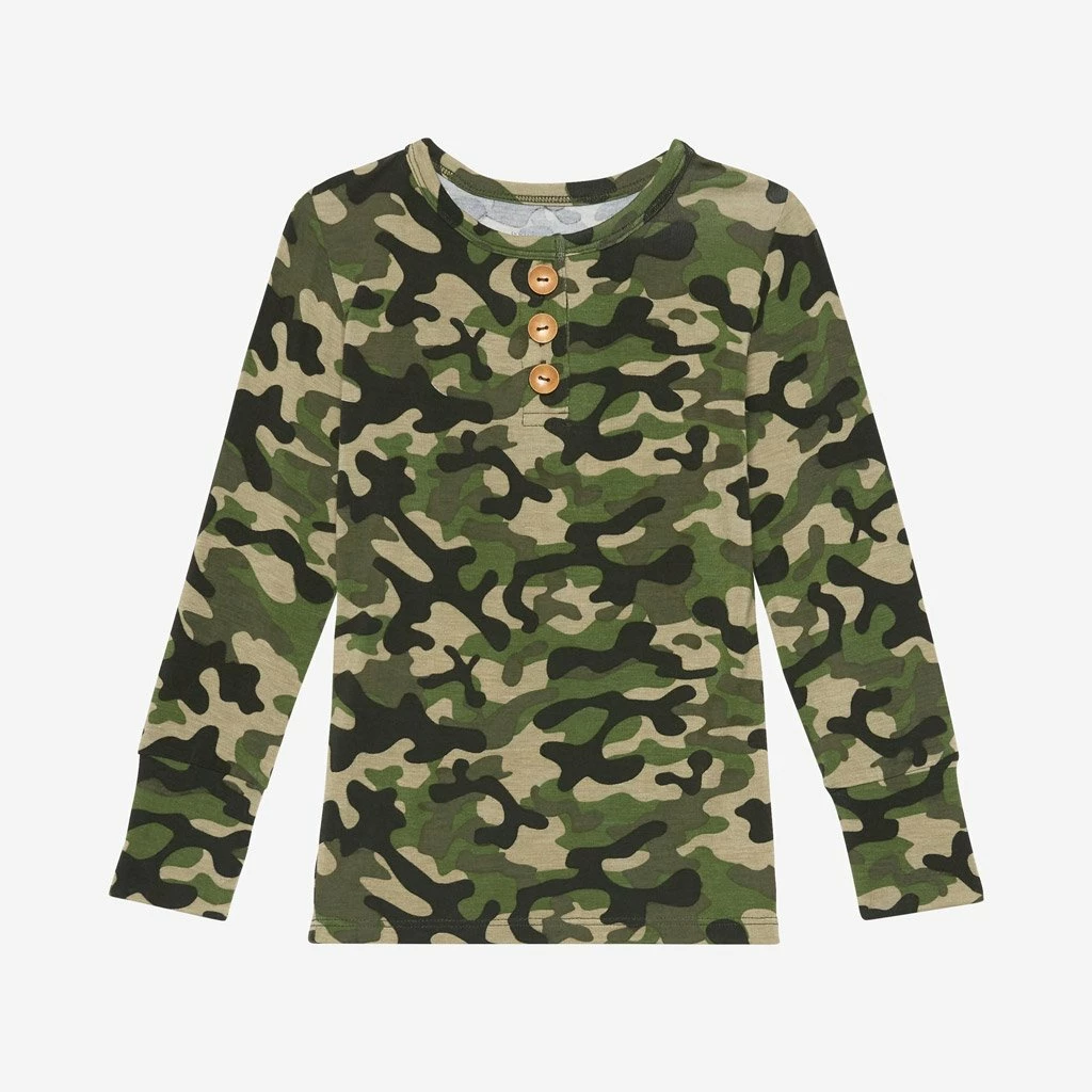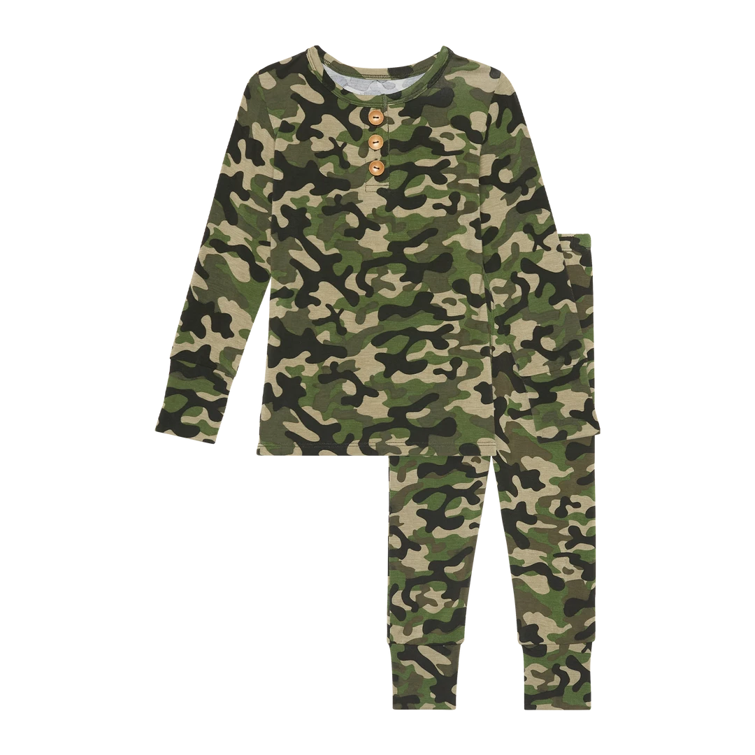 Cadet long sleeve loungewear jammies for stylish everyday wear with henley wood button neckline. Enjoy the brisk days of fall in our breathable kid’s loungewear in a scoop neck and long sleeves. Our loungewear jammies are breathable, lightweight and ultra-soft. Delicate on your child’s skin, our jammies are a favorite with all children. Lush bamboo is not only buttery soft but our signature posh designs make them fun to wear whether your child is playing, lounging, or on a playdate.