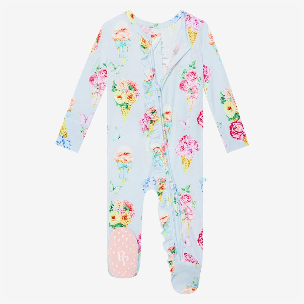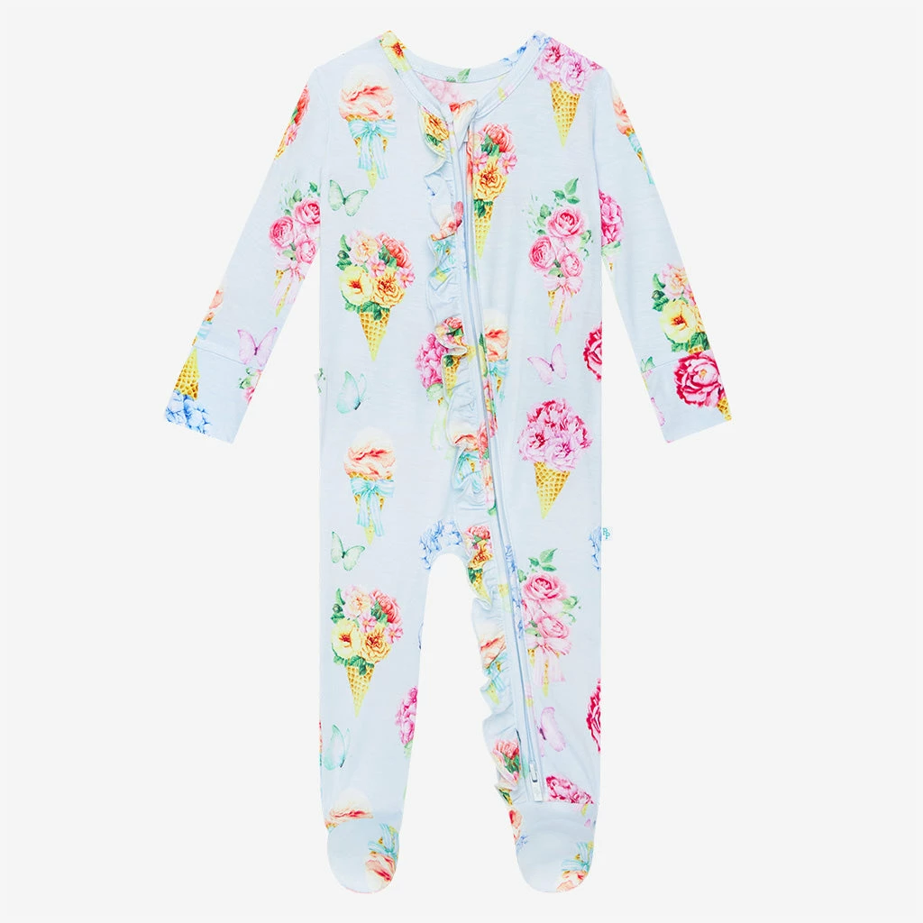 Posh Peanut Camille Footie Ruffled Zippered One Piece Baby