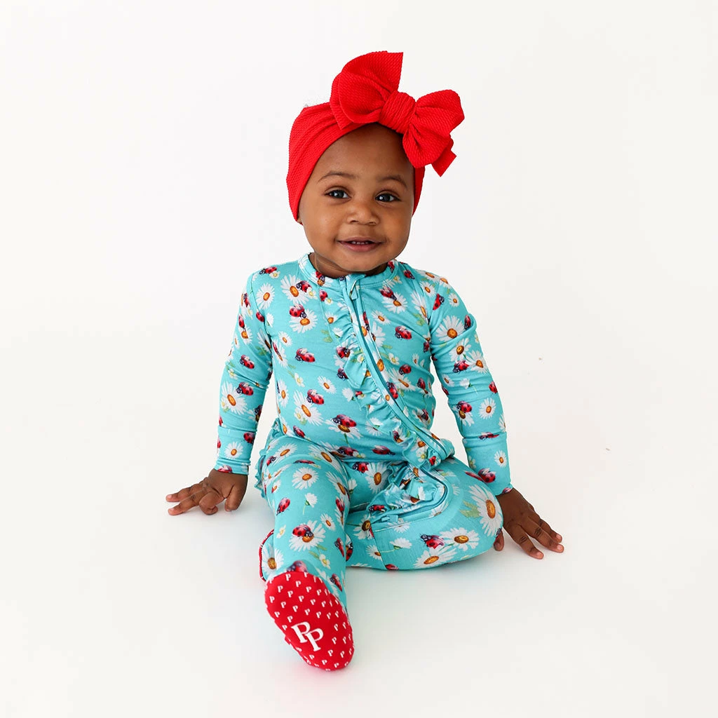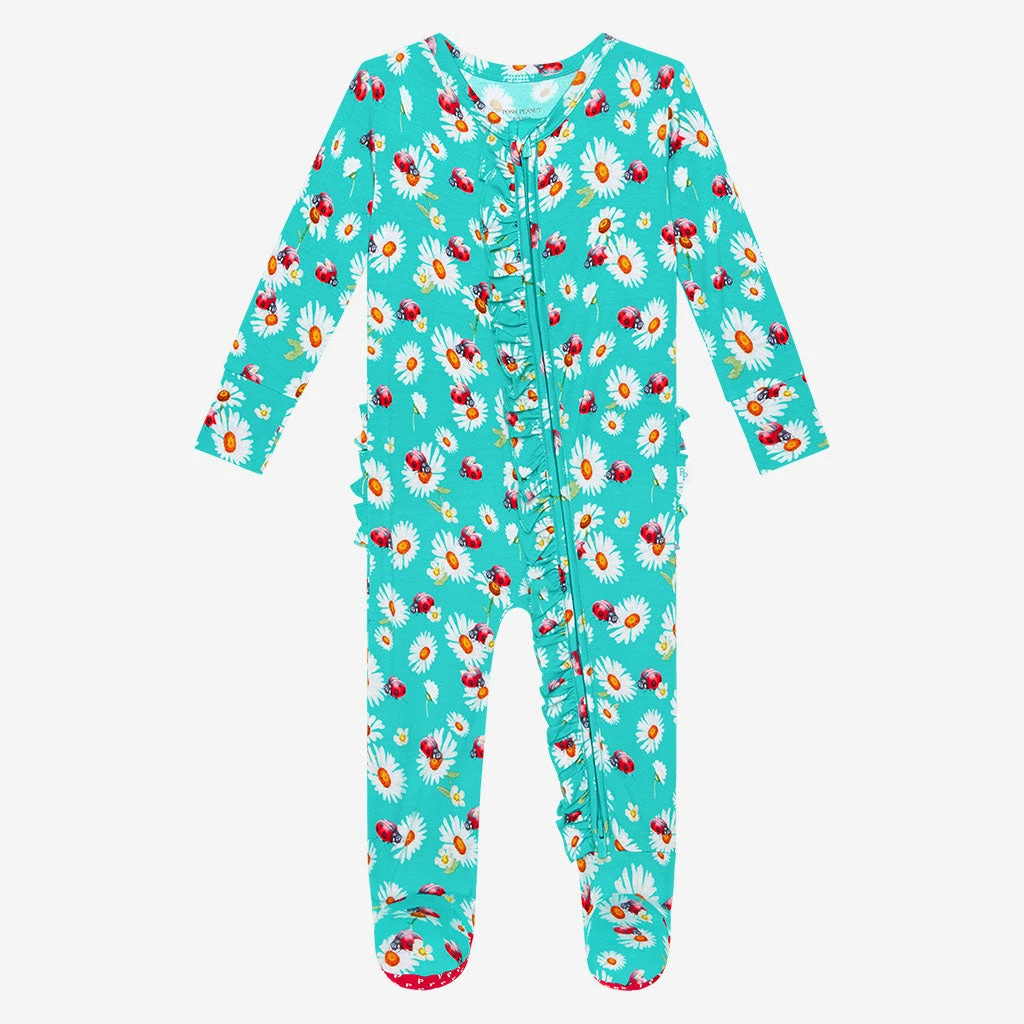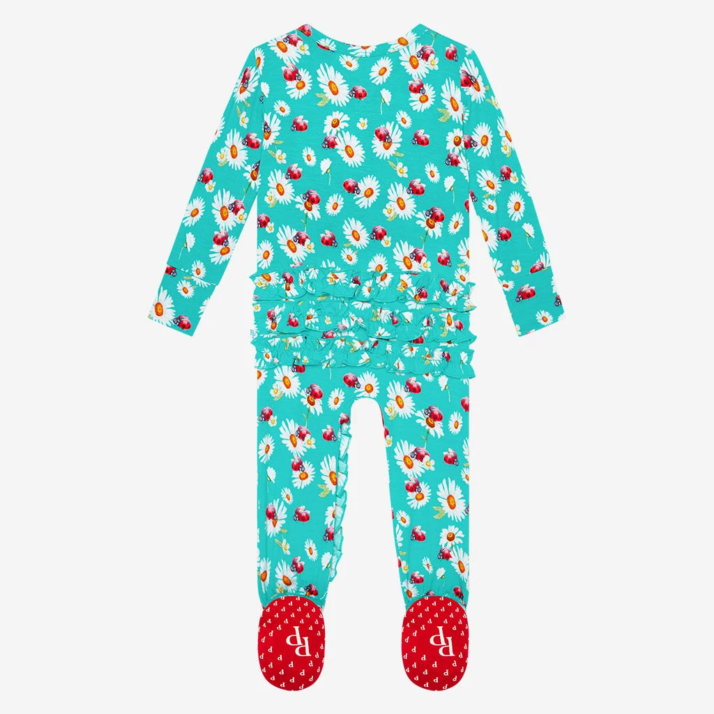 Posh Peanut Ladybug Footie Ruffled Zippered One Piece Baby