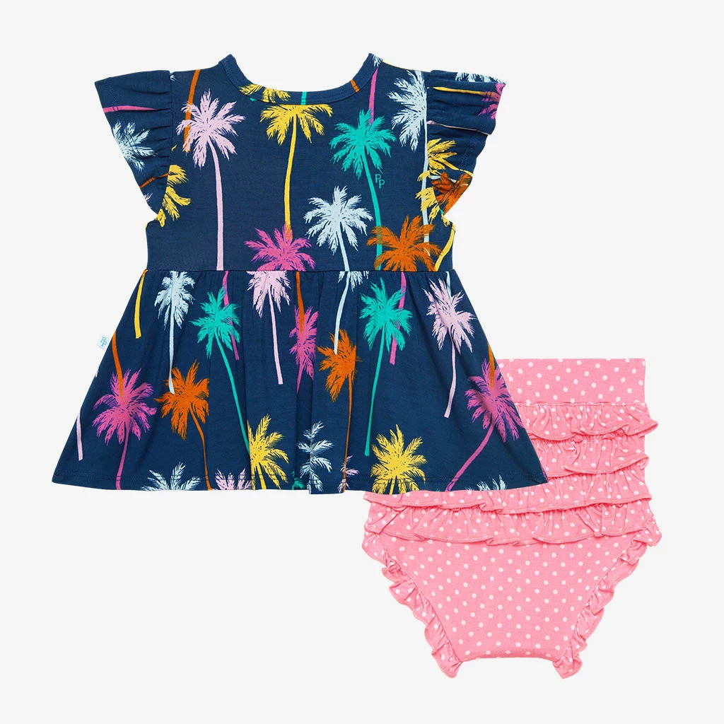 Posh Peanut Palmer Ruffled Capsleeve Henley Peplum Top & Bloomer Set Baby