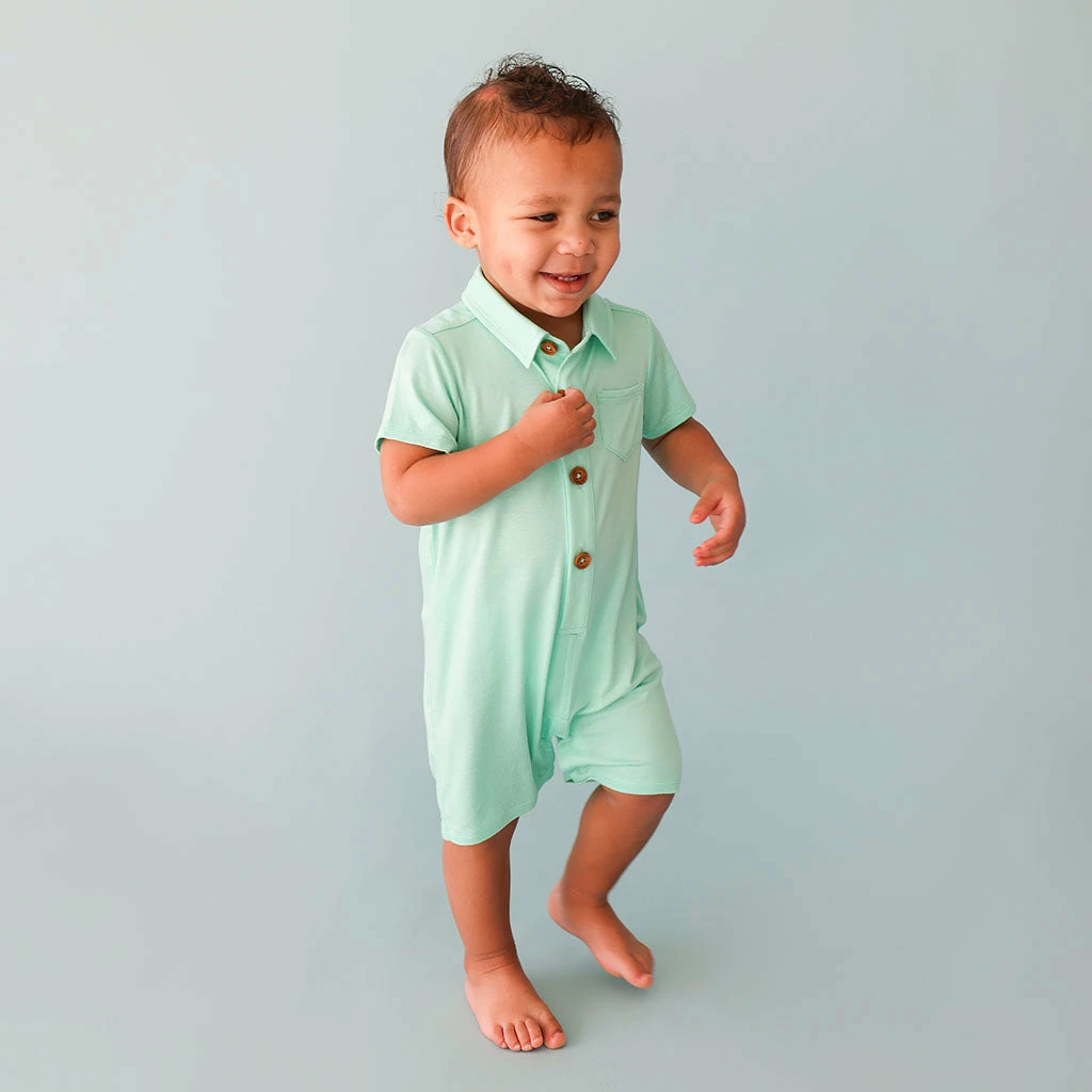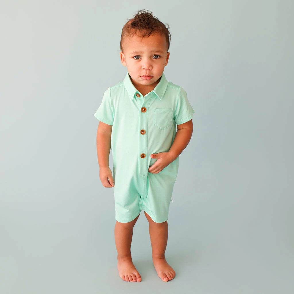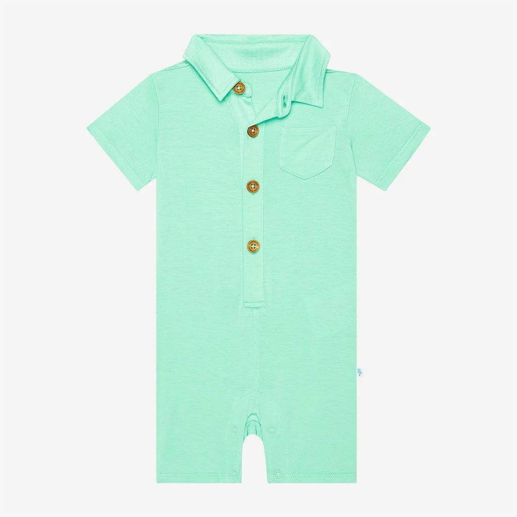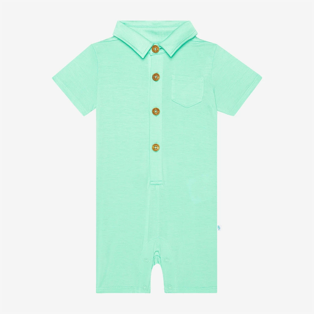 Posh Peanut Sea Glass Short Sleeve Collared Henley Romper