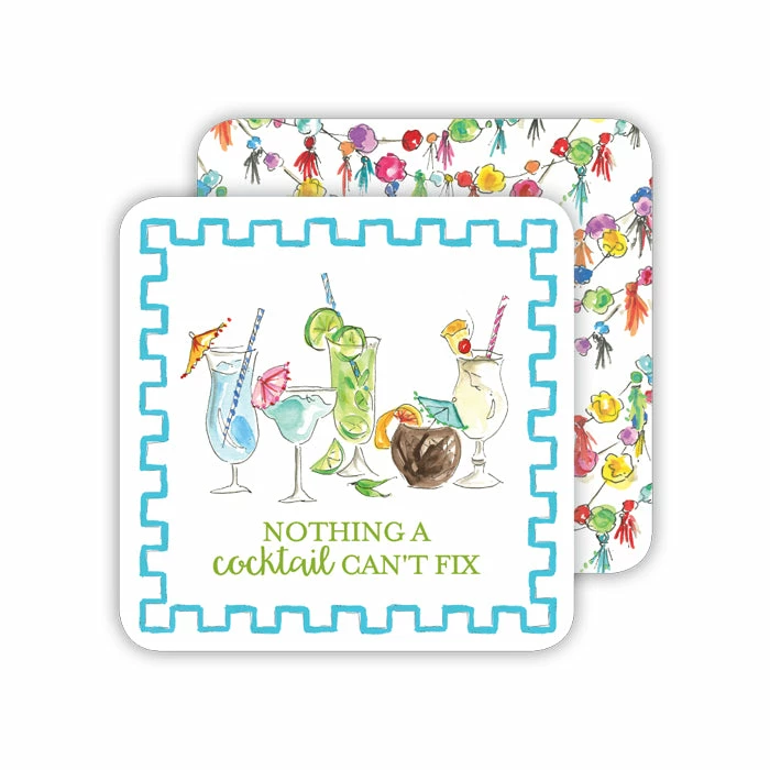 Have a cocktail, but keep the condensation under control! These 4×4 coasters are a conversation piece! Each coaster has a reversible coordinating pattern on the reverse side.