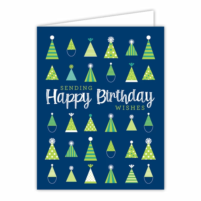 Roseannebeck Greeting Card – Sending Happy Birthday Wishes Green Party Hats Stationery