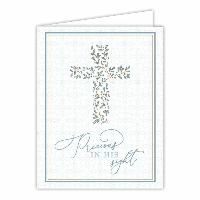 Roseannebeck Stationery Greeting Card – Precious In His Sight Blue Handpainted Floral Cross