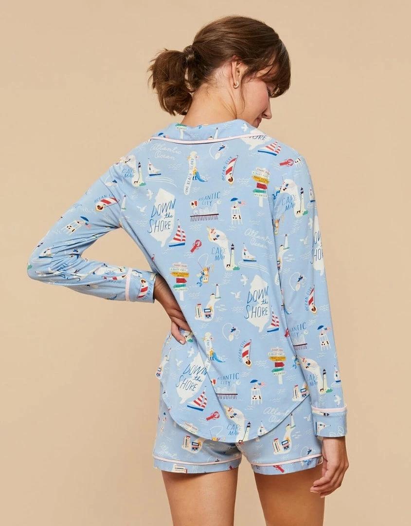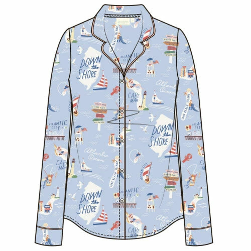 Cute and comfy, these pajama tops are made for cozy movie nights, comfortable sleeping, and slow Lowcountry Sundays. These super soft knit pants have just the right amount of stretch, you’ll never want to take these off! Adorned with Greetings From Down the Shore illustrated map icons, these comfy sleeper sets also make for great gifting!