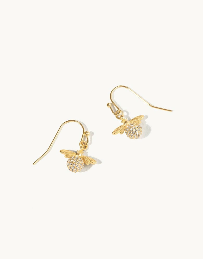 Spartina Jewelry Delicate Sparkly Bee Drop Earrings Crystal Gold
