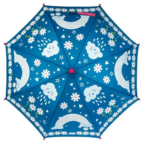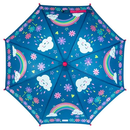Harness the power of magic with this color changing umbrella! Well, not actual magic, but pretty close… to be honest, we still aren’t 100% sure how it works. What we do know is, the artwork on the umbrella changes color when it gets wet. HOW COOL IS THAT?! Now every rainy day (or sprinkler or water hose… its limitless really) is magical with a color changing umbrella. These umbrellas are easy to open and designed without tricky buttons that pinch tiny fingers. Made from 100% polyester and fairy dust, it can be wiped clean and makes an awesome gift! There are 8 styles to choose from and can match back with any of the SJ rain gear to complete the look. With this umbrella, you’ll for sure be dreaming of more rainy days!