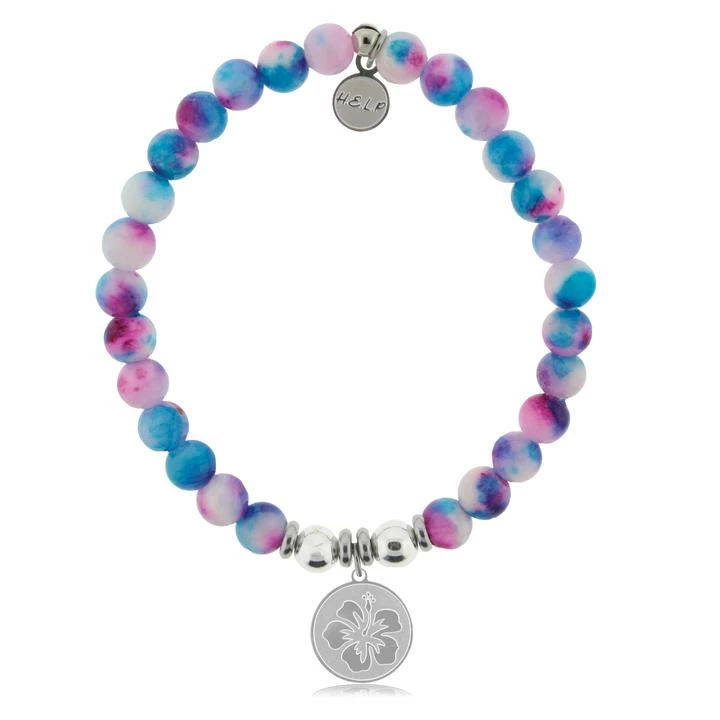 TJazelle Help Collection Jewelry Hibiscus Charm With Cotton Candy Jade Beads Charity Bracelet