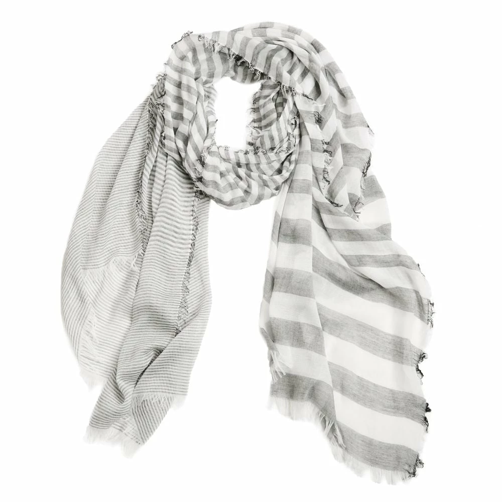 A summer scarf is always a great addition to a summer wardrobe! This striped scarf is light weight and features a fringe edge. Wear as a scarf or a sarong cover-up at the beach!