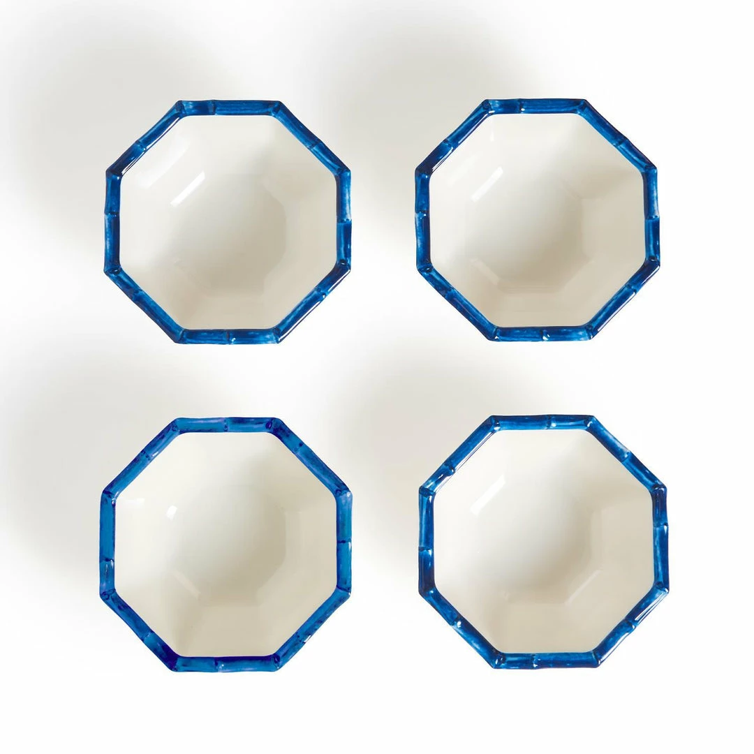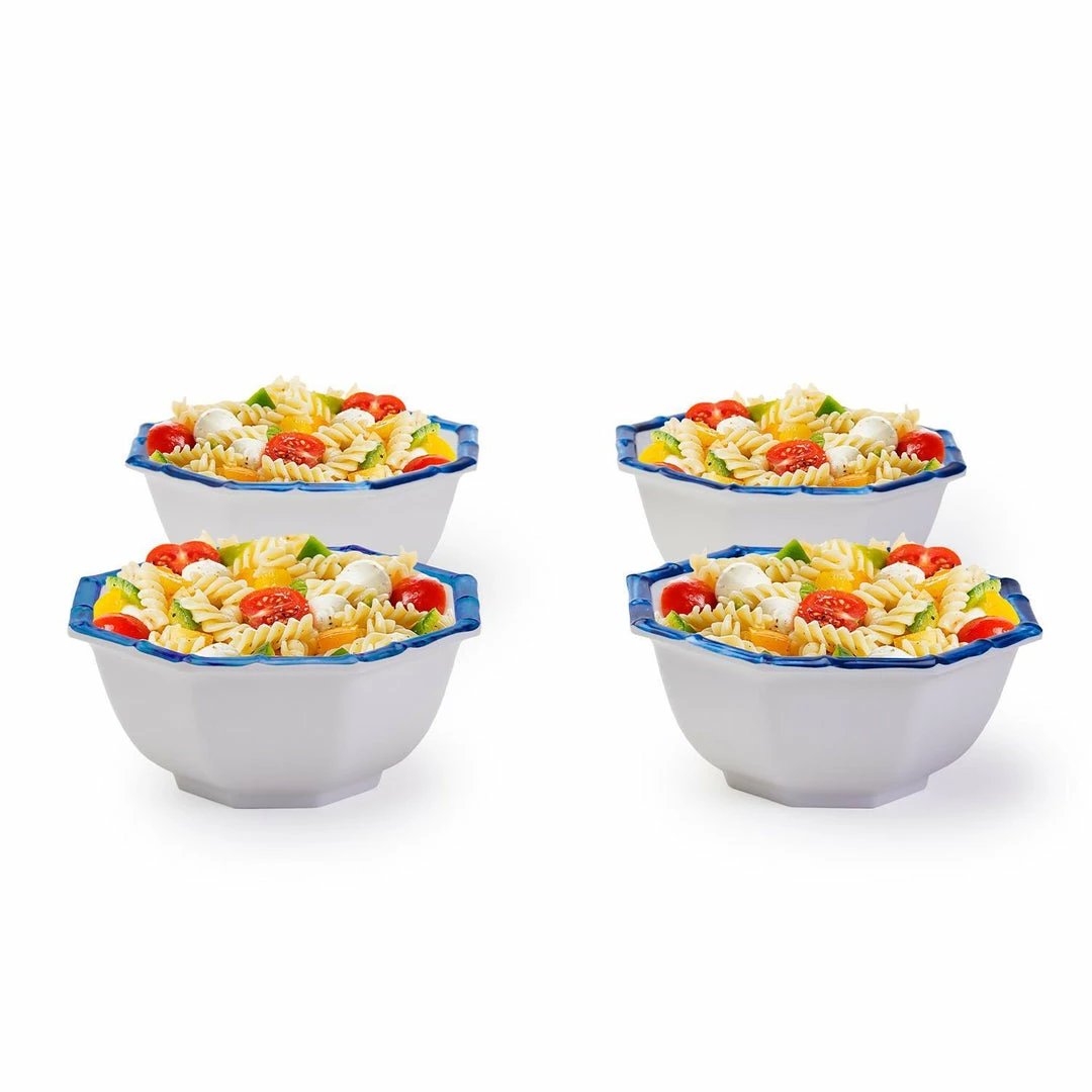 Aesthetic and functional everyday salad bowl set. This 4-piece melamine blue bamboo rim set makes for a nice addition to your existing dinnerware pieces. Bringing a unique style to any gathering or even just your daily dinner routine.