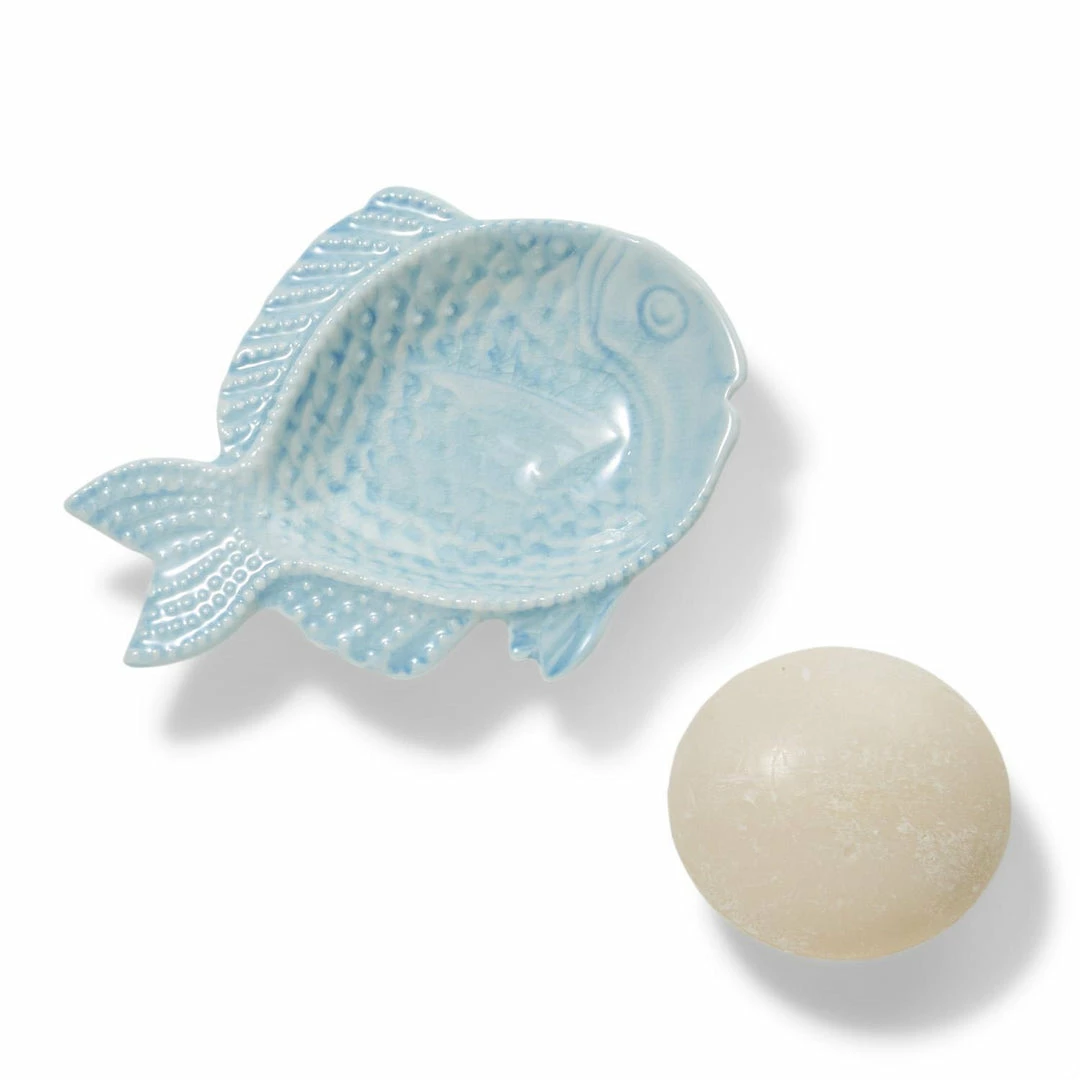 Two’s Company Fish Soap Dish With Ocean Mist Scented French Milled Soap