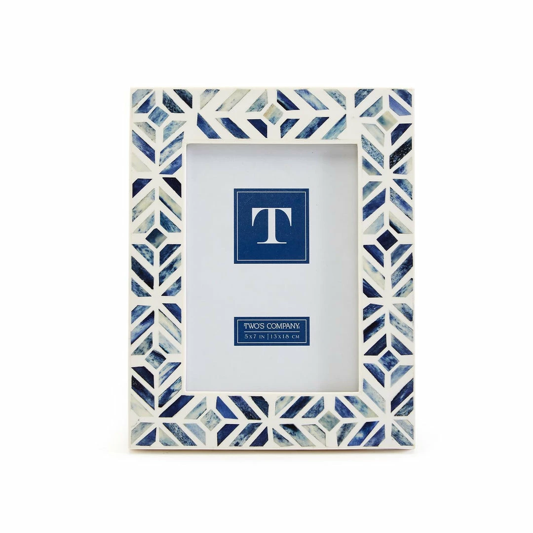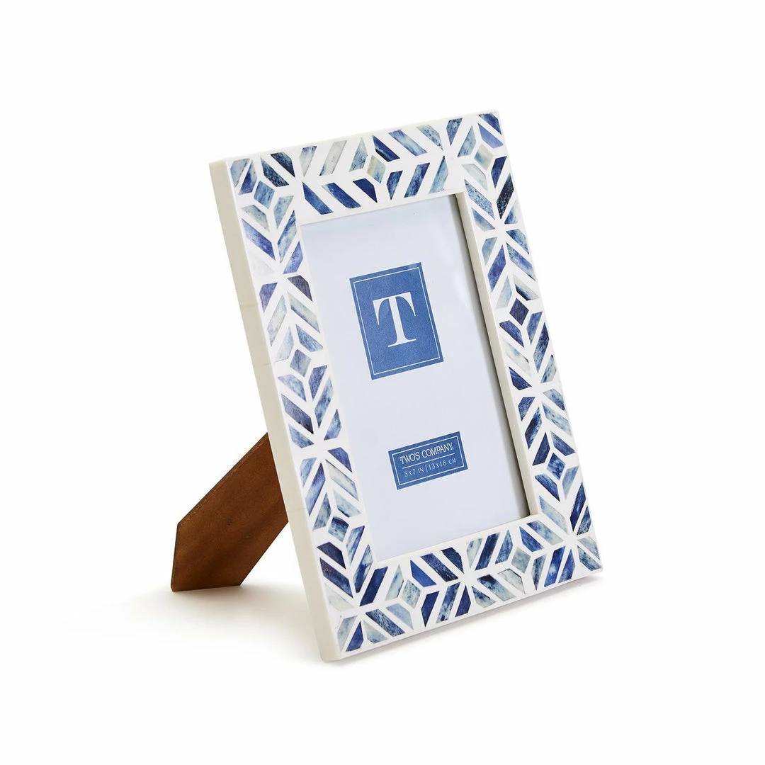 This modern and beautiful frame is created by creating a mosaic pattern with bone and resin. The bone is dyed with a blue dye that the color will depend on the density of the bone material.