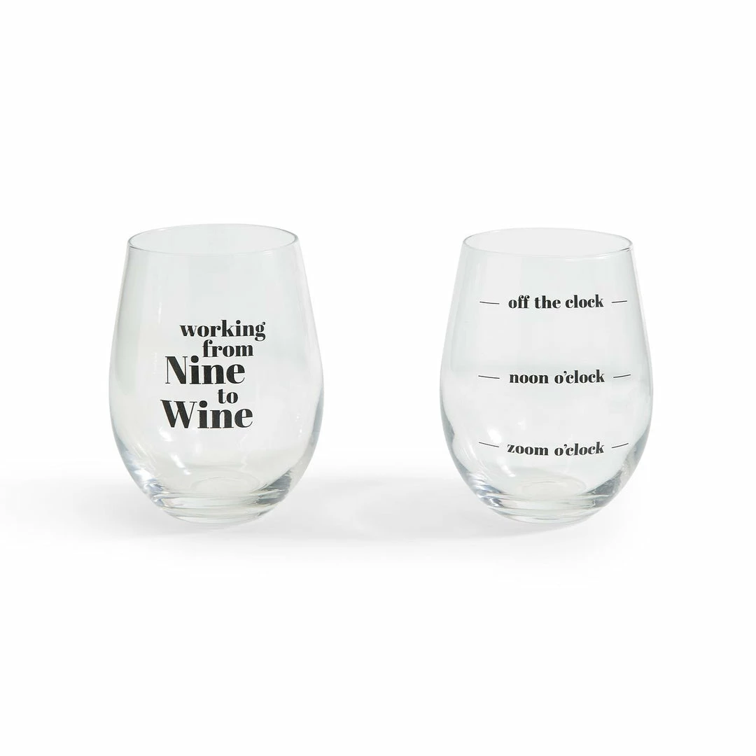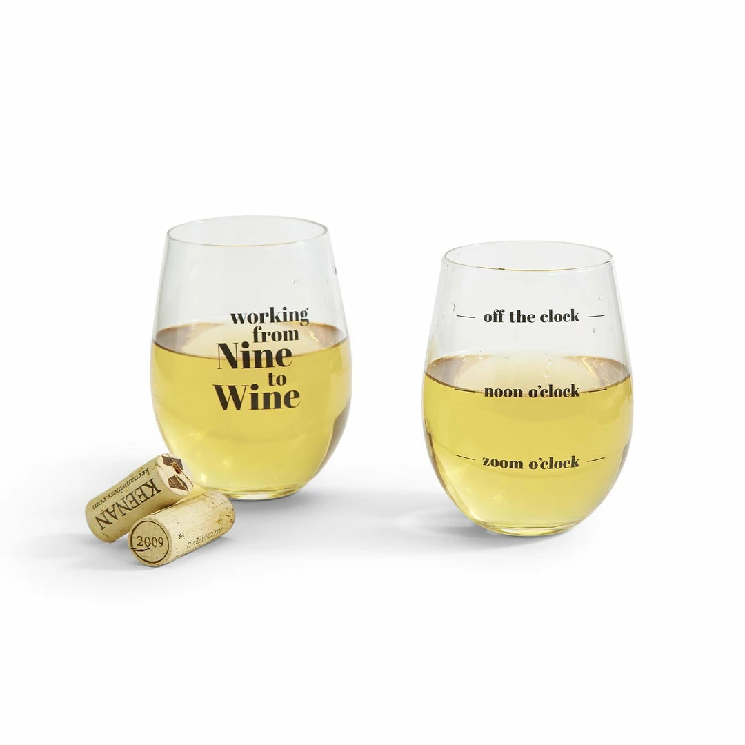 The perfect gift for the wine lover in your life or just for fun, these 16 oz. stemless glasses feature clever sayings: “Working from Nine to Wine and Off the Clock”. The stemless shape means they are dishwasher safe and less prone to breakage.
