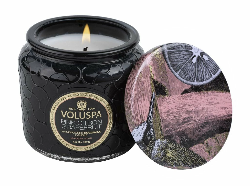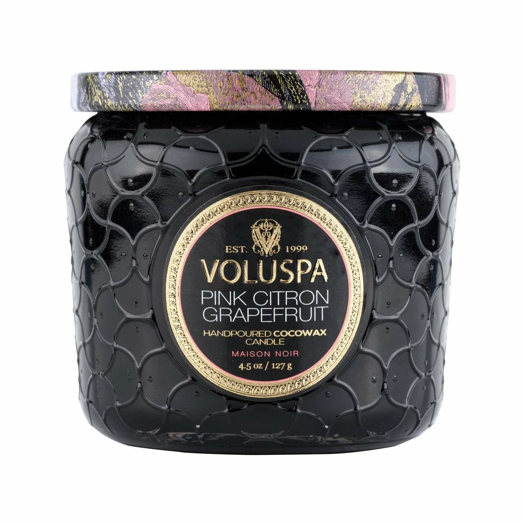 A surprising hint of decor for any space, the Petite Jar Candle is small yet eye-catching with glass embossed in the Maison Collection pattern. A metallic decorative lid can be used to extinguish the flame or keep the candle dust-free when not in use. This candle makes the perfect travel companion or thoughtful gift.