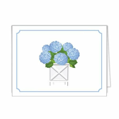 Write your notes in style with our brand-new double-sided folded notecards! This darling piece of stationery has our blue hydrangea planter on the front, and light blue stripes on the back.